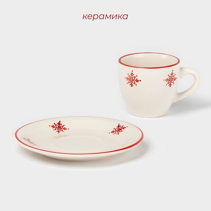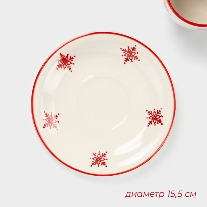 Чайная пара новогодняя Доляна «Легенда Севера», чашка 220 мл, блюдце d=15,5см