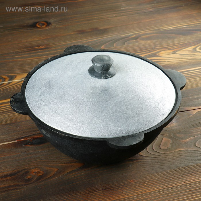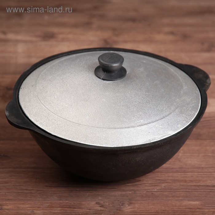Казан чугунный, 3,5 л, плоское дно, алюминиевая крышка
