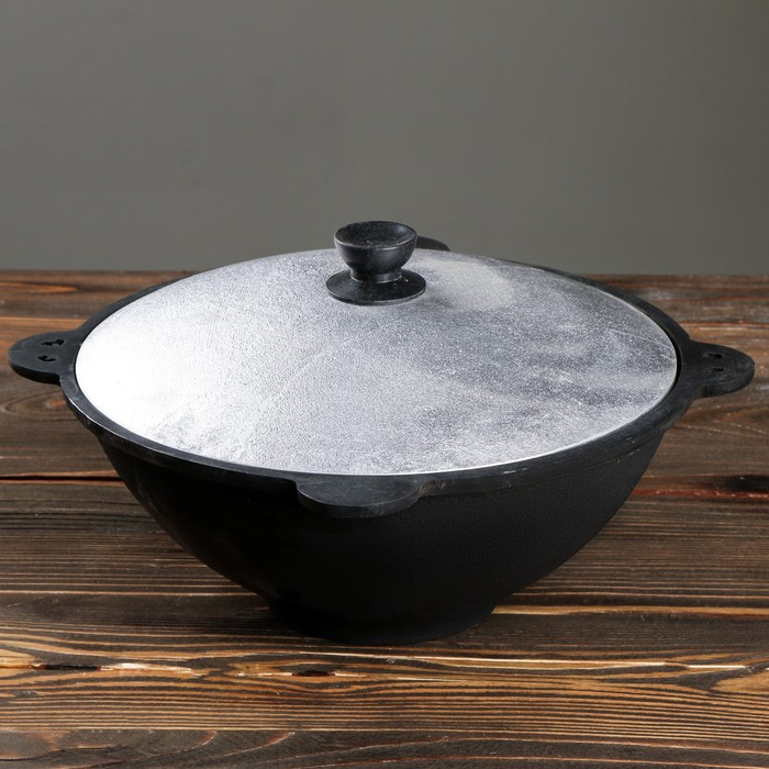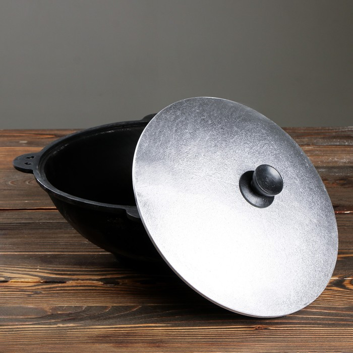 Казан чугунный, 4,5 л, плоское дно, алюминиевая крышка
