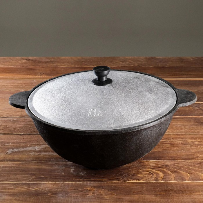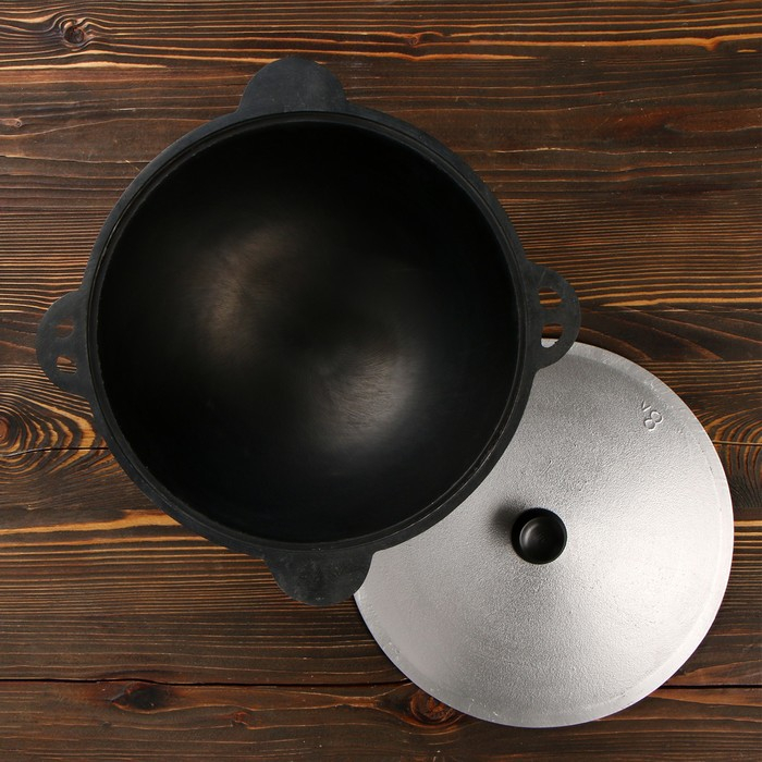 Казан чугунный, 8 л, плоское дно, алюминиевая крышка