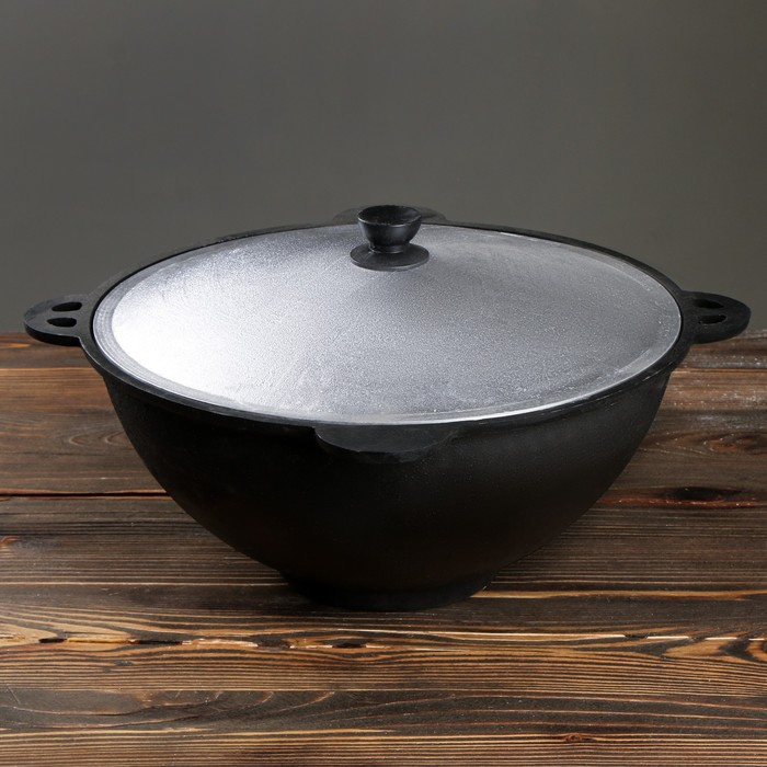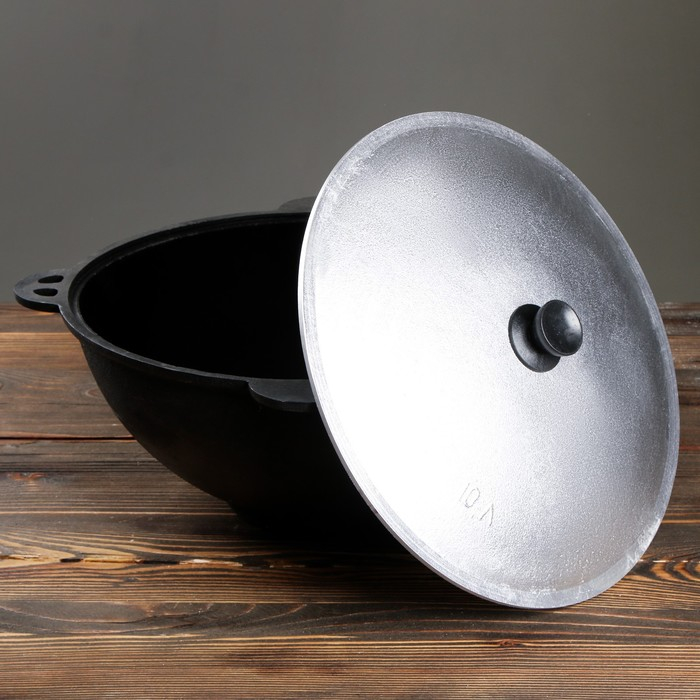Казан чугунный, 10 л, плоское дно, алюминиевая крышка