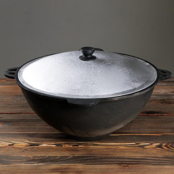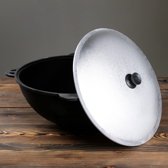 Казан чугунный, 12 л, плоское дно, алюминиевая крышка