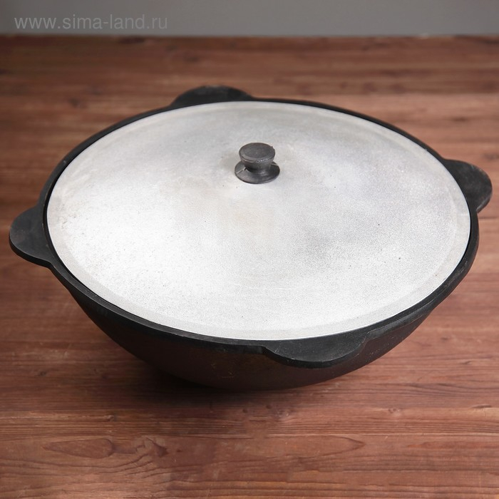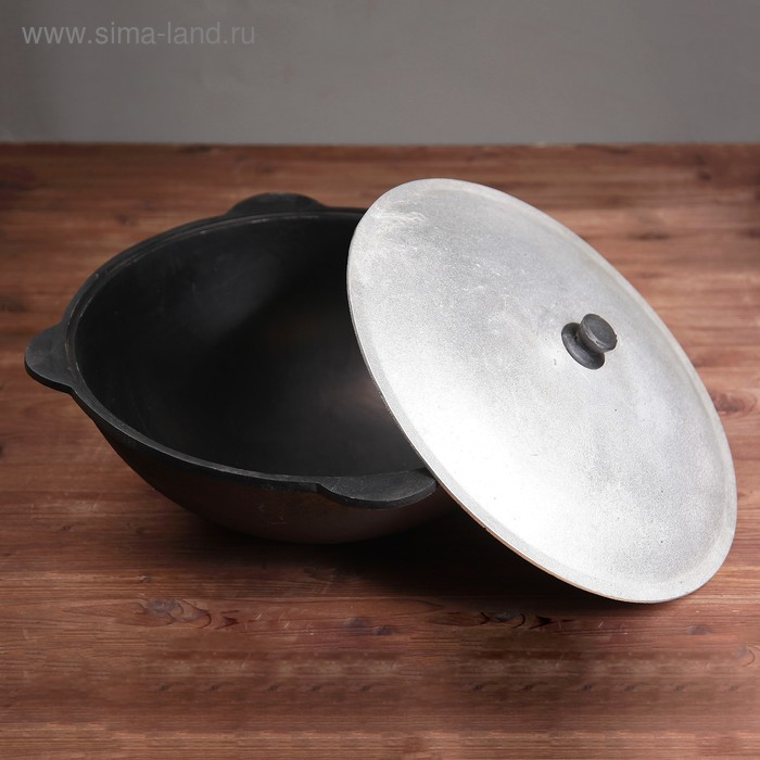 Казан чугунный, 16 л, плоское дно, алюминиевая крышка