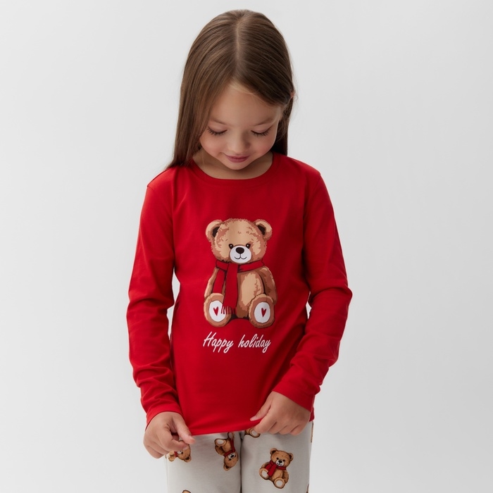 Пижама детская (лонгслив и брюки) KAFTAN "Мишка в шарфе" р.28 (86-92)