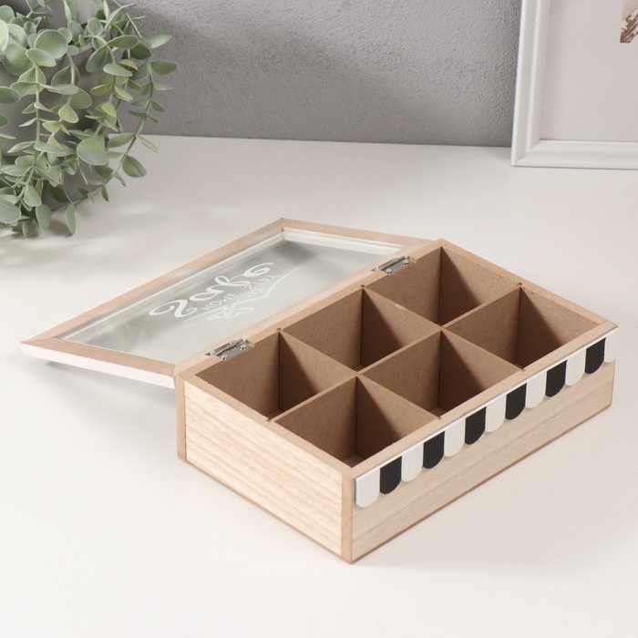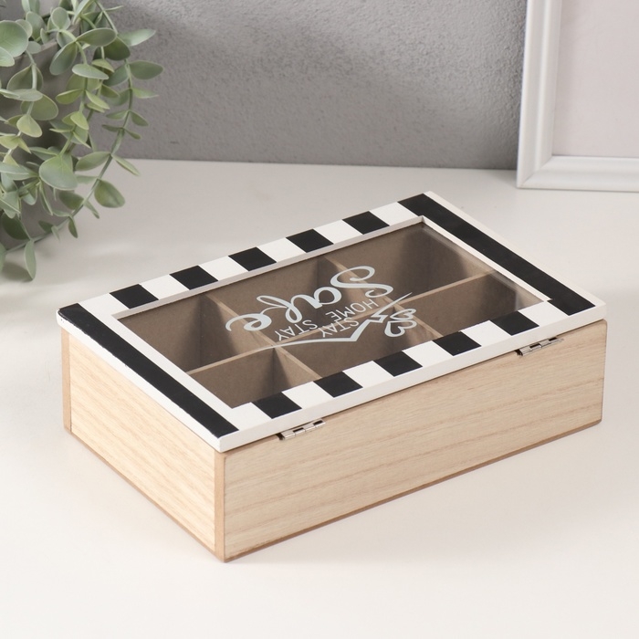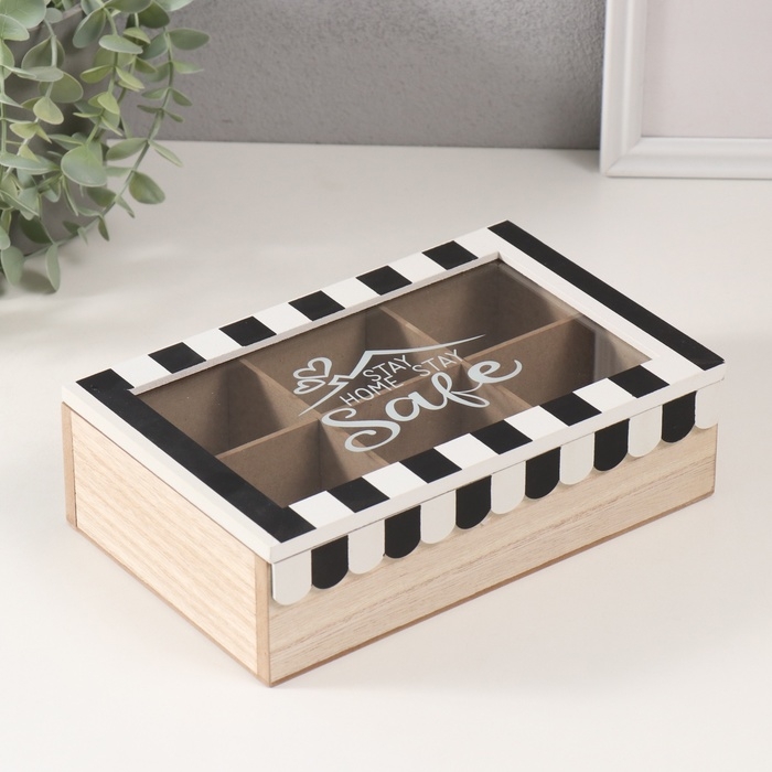 Шкатулка дерево с делениями "Крыша дома с сердечками" чёрная с белым 23х15х7 см