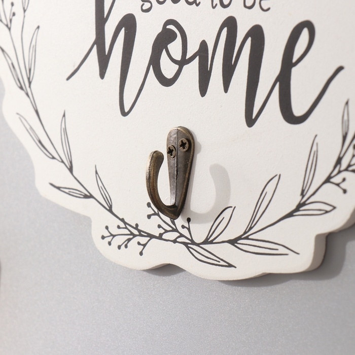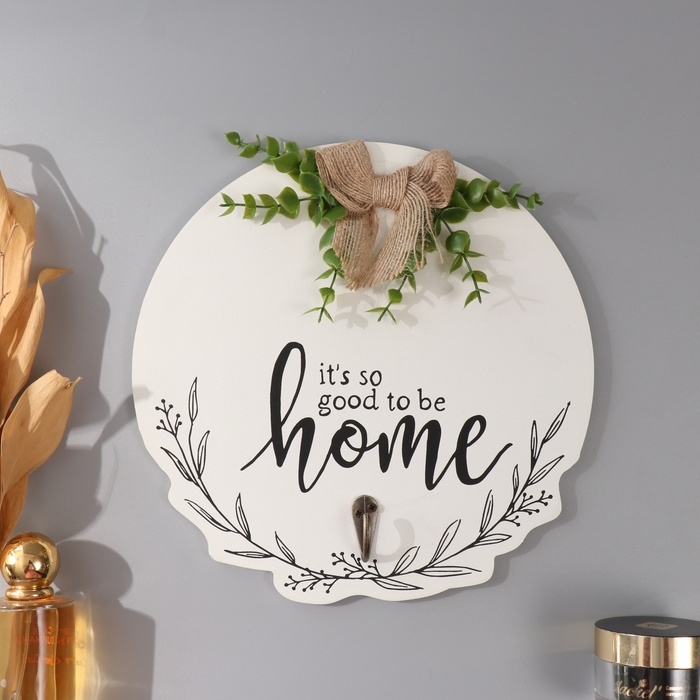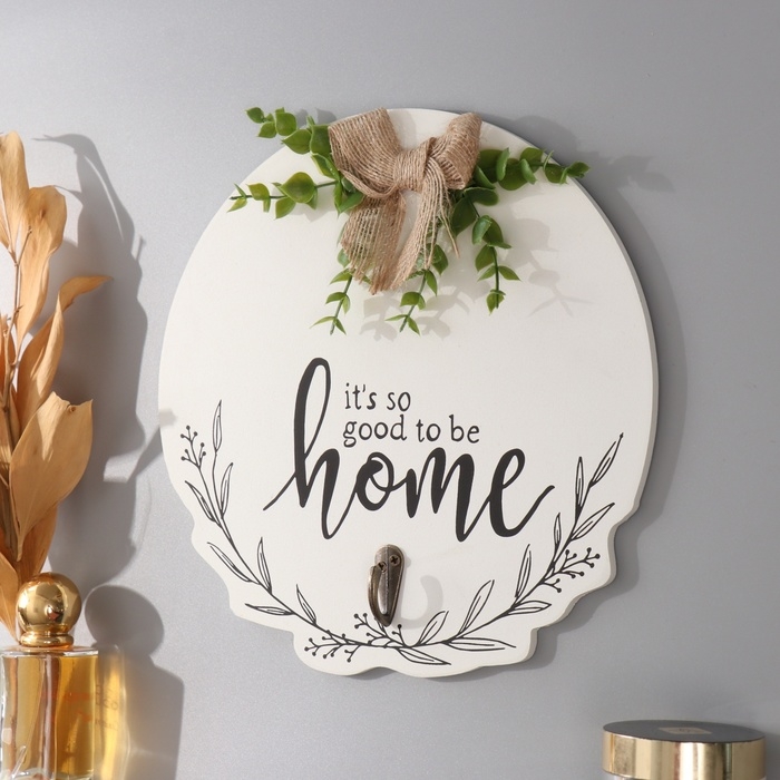 Крючки декоративные дерево "Хорошо быть дома. Бант и эвкалипт" 23,5х23,5 см