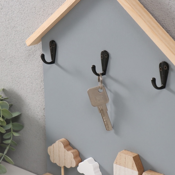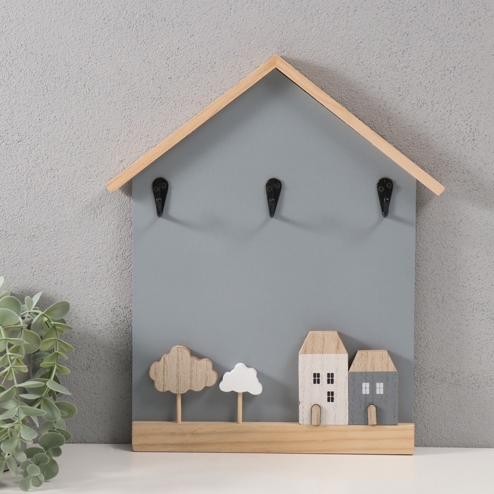 Крючки декоративные дерево "Домики и деревья" серый 28х33,5 см