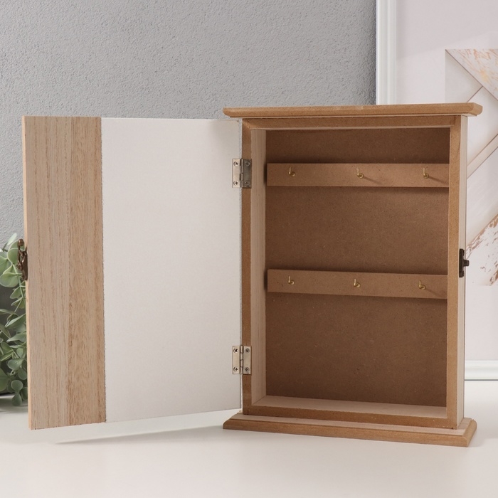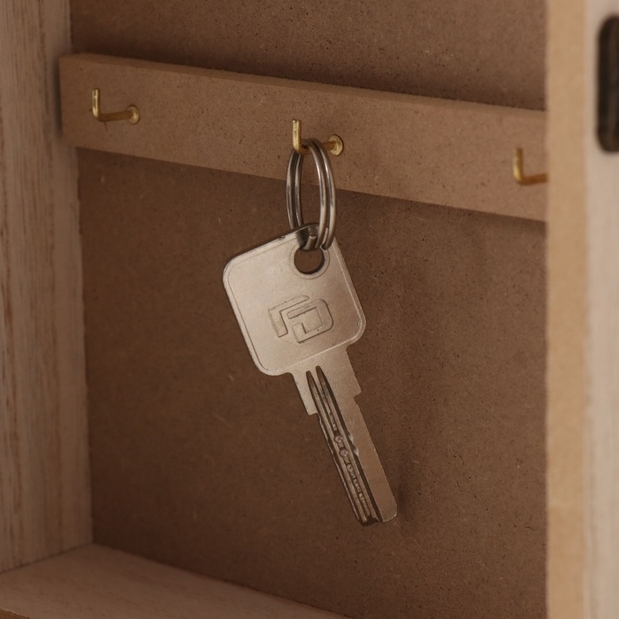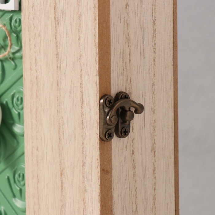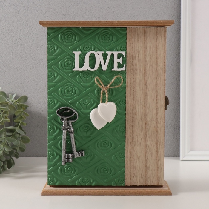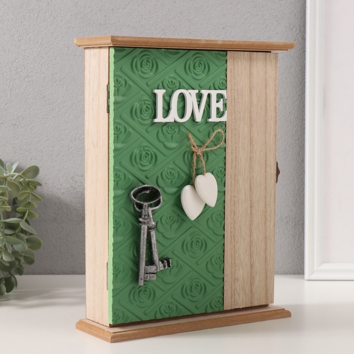 Ключница дерево 6 крючков "Отпечаток листьев. Ключи и сердце" зелень 6,5х20х26,5 см