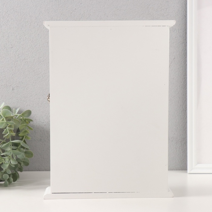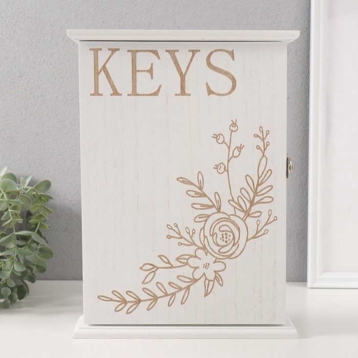 Ключница дерево 6 крючков "Веточка цветочная" состаренный белый 6х22х30 см