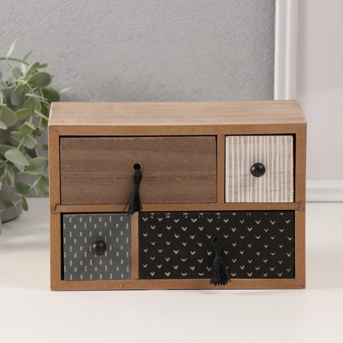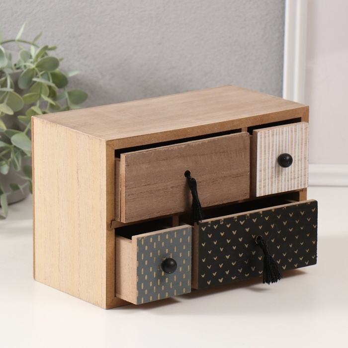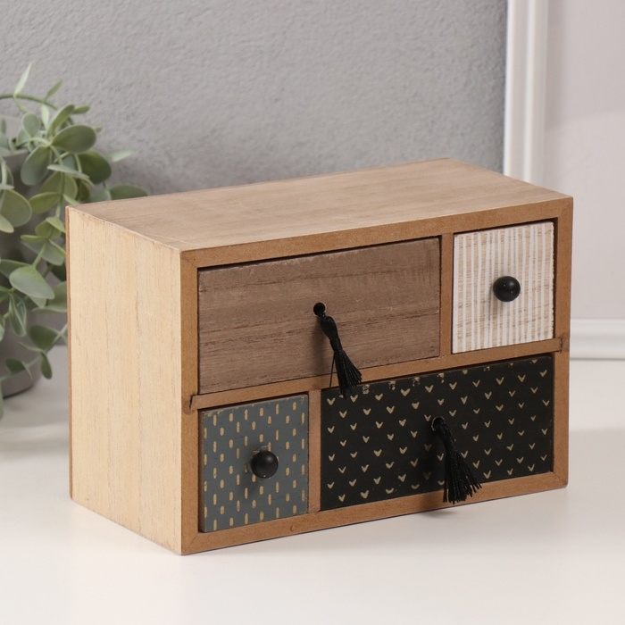 Шкатулка дерево 4 ящика "Комод. Разные фактуры" 10х20х13,5 см