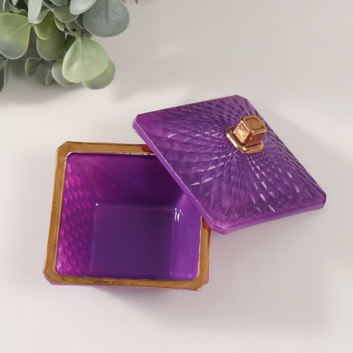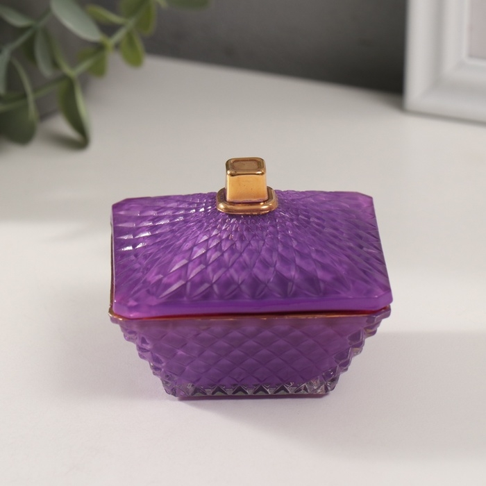 Шкатулка стекло "Вспышка" сирень с золотом 7,5х7,5х6 см