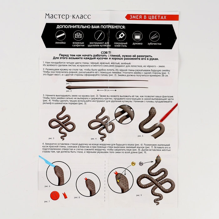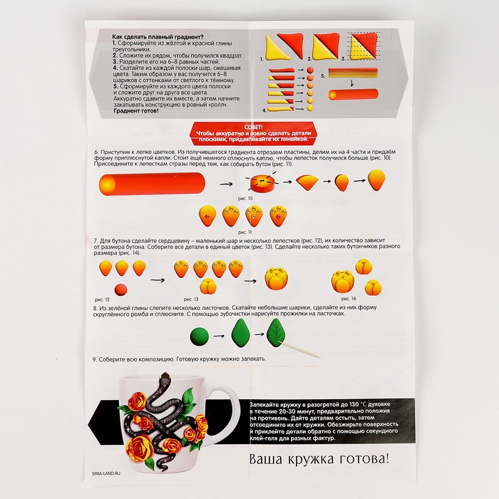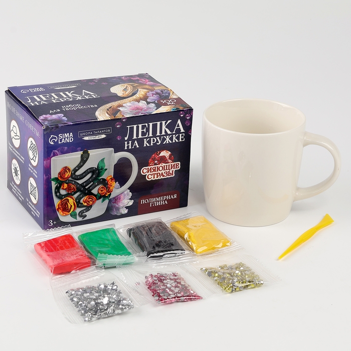 Набор для декора кружки полимерной глиной со стразами "Лепка на кружке" Змея с цветами