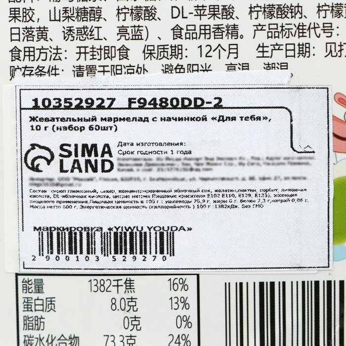 Жевательный мармелад с начинкой "Для тебя", 10 г (набор 60 шт)