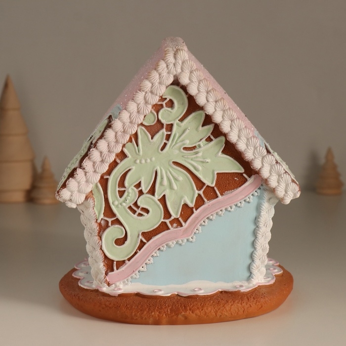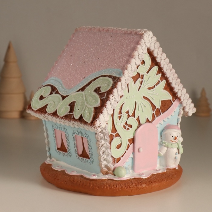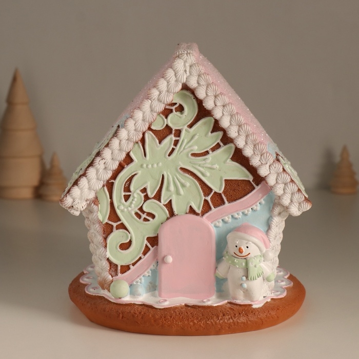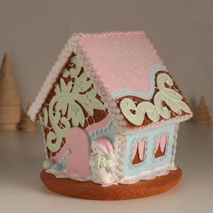 Сувенир полистоун свет "Пряничный домик с узорами, со снеговиком" 16,5х16х17 см