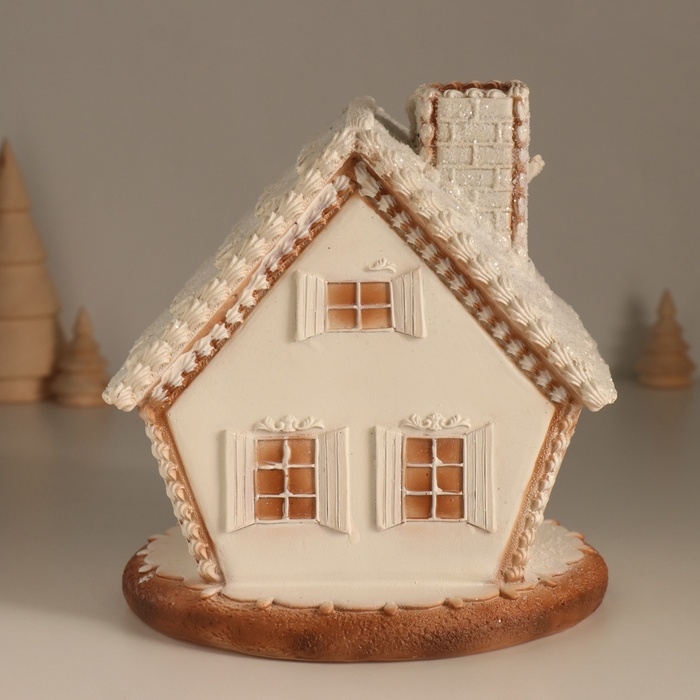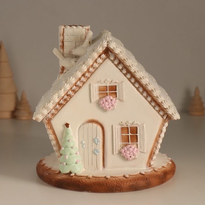 Сувенир полистоун свет "Пряничный домик с узорами, с птицами" 16,5х16х17 см