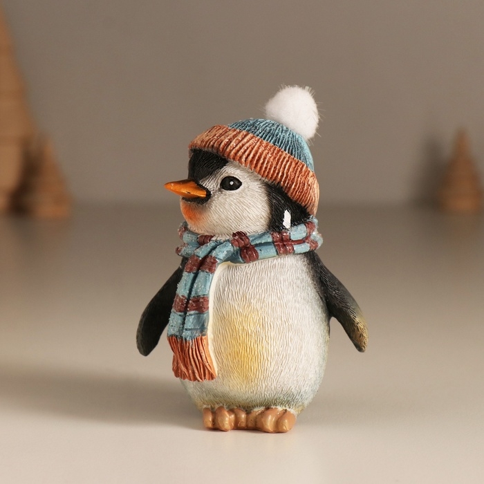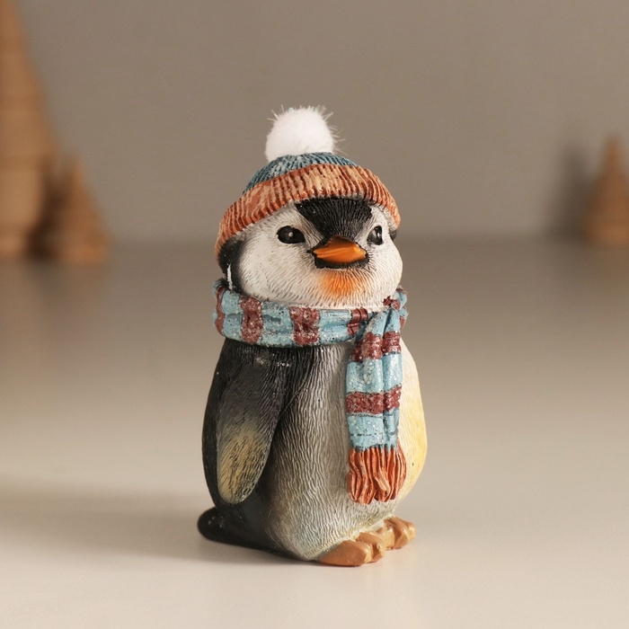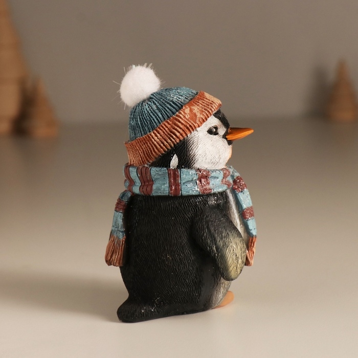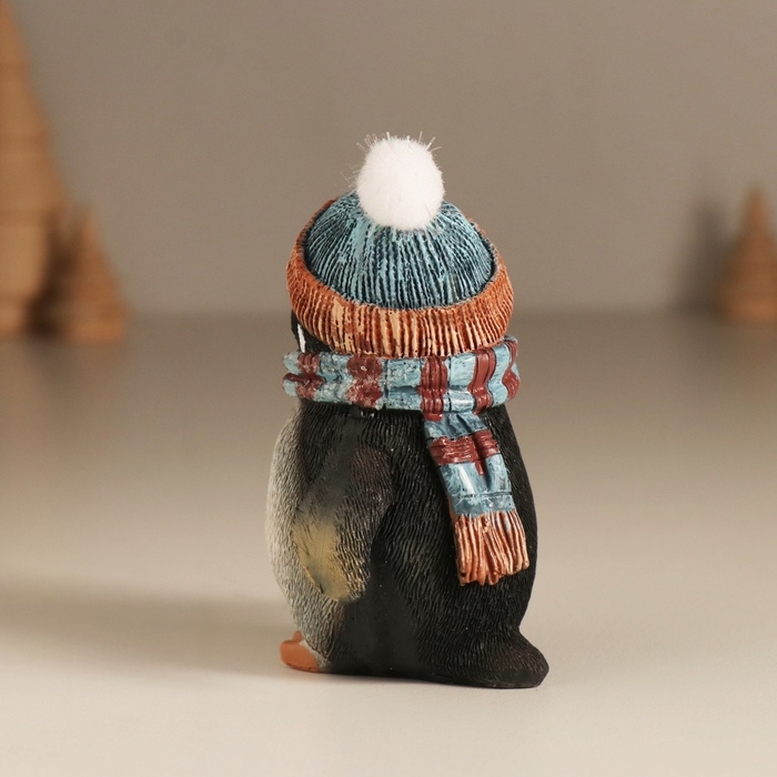 Сувенир полистоун "Важный пингвин в шапке с бомбошкой, в голубом шарфе" 7,5х6х9,5 см