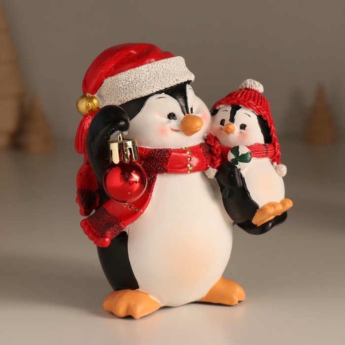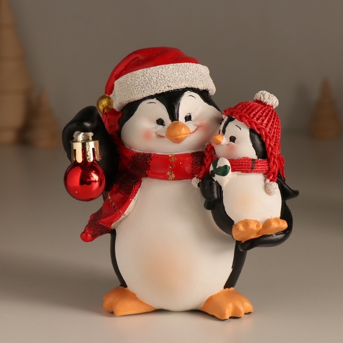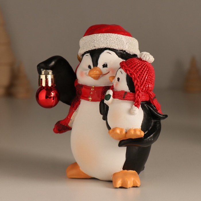Сувенир полистоун "Пингвин с малышом и ёлочным шариком" 11х7,5х12 см