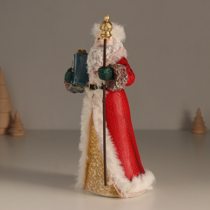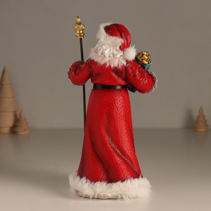 Сувенир полистоун "Дед Мороз в красной шубе, с посохом, с подарком" 11,5х8,5х20,5 см