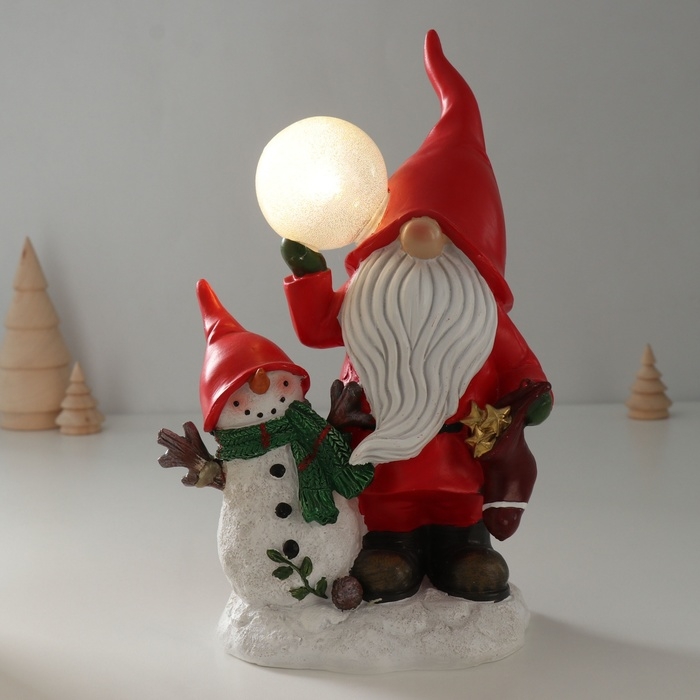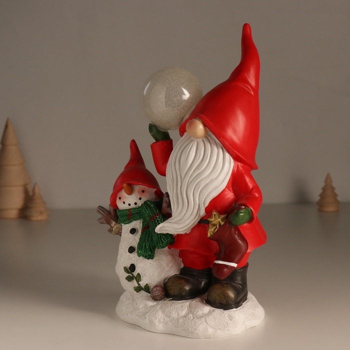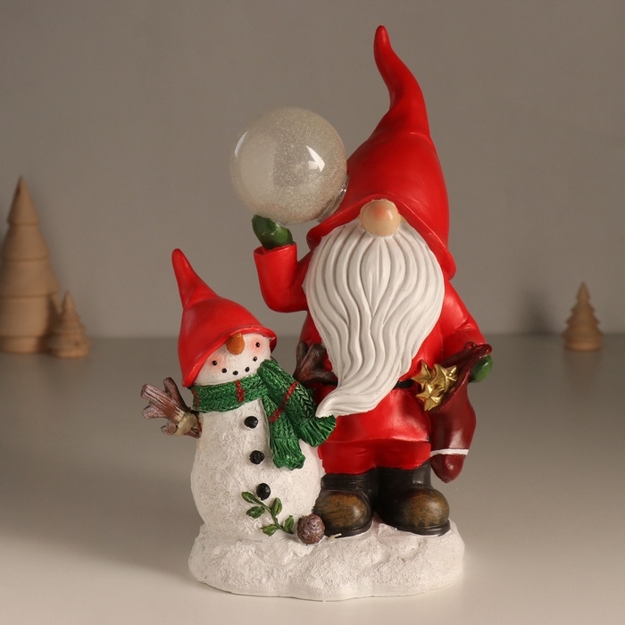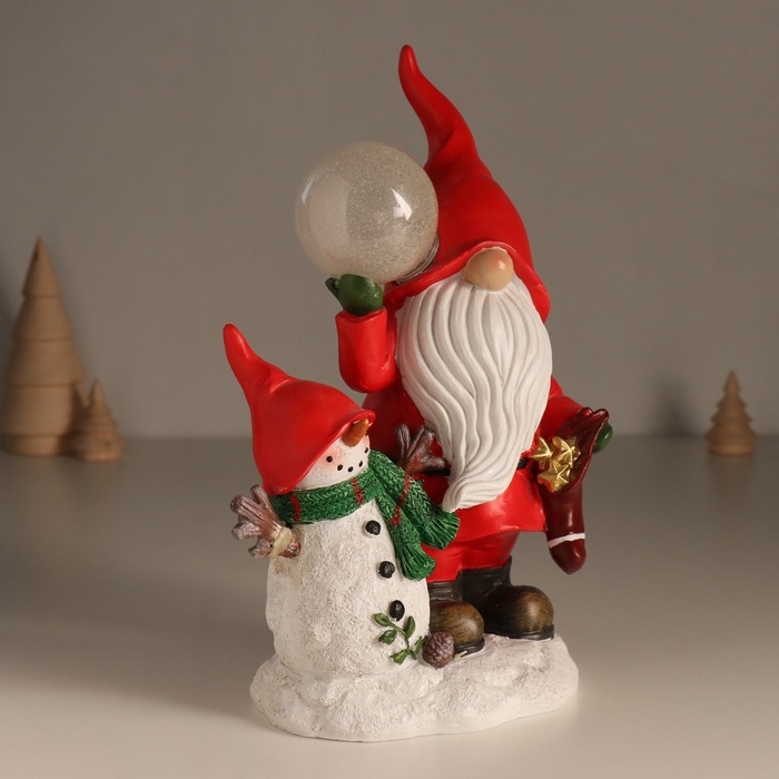 Сувенир полистоун свет "Дед Мороз в красном наряде со снеговиком, с шариком" 15х10,2х23 см 1032591