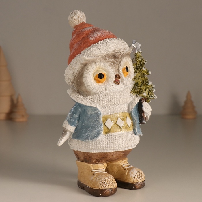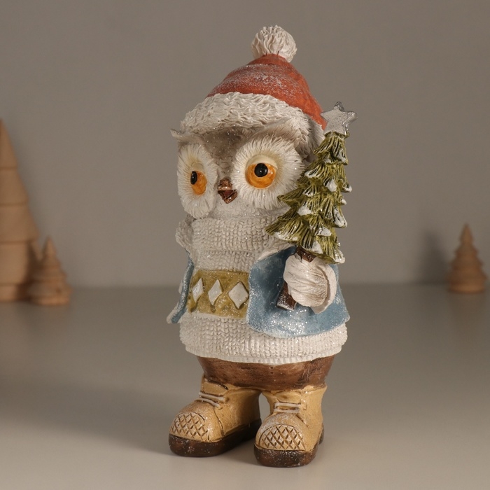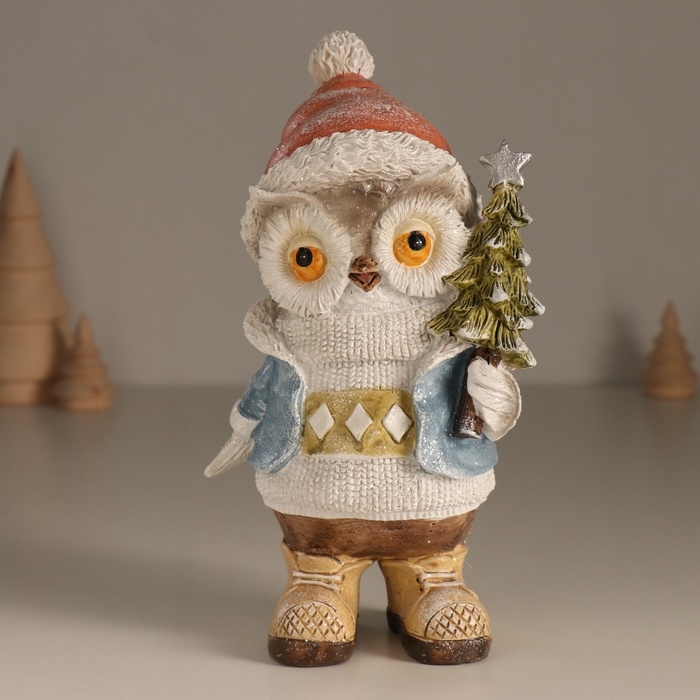 Сувенир полистоун "Совёнок в свитере с ромбами, с ёлкой" 11,6х8х19 см