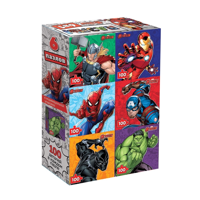 Набор пазлов 6 в 1 «Мстители», по 100 деталей в каждом пазле