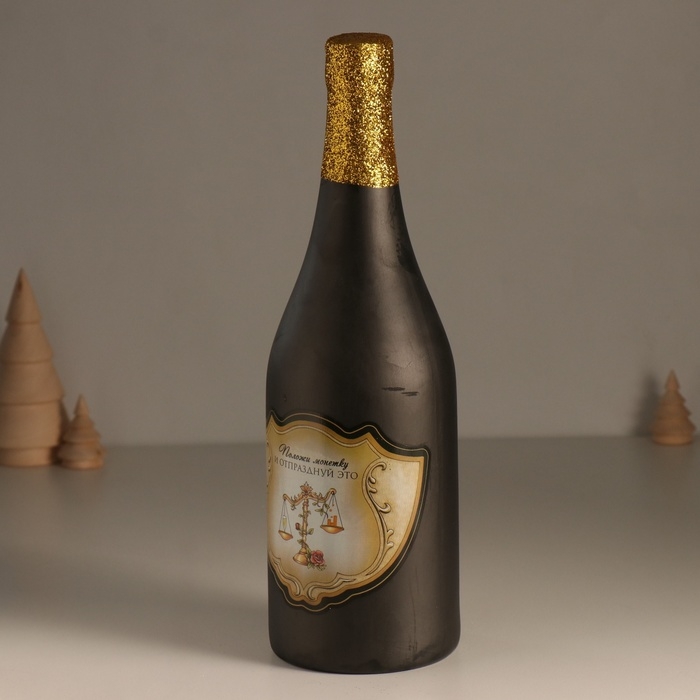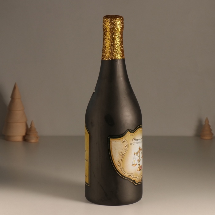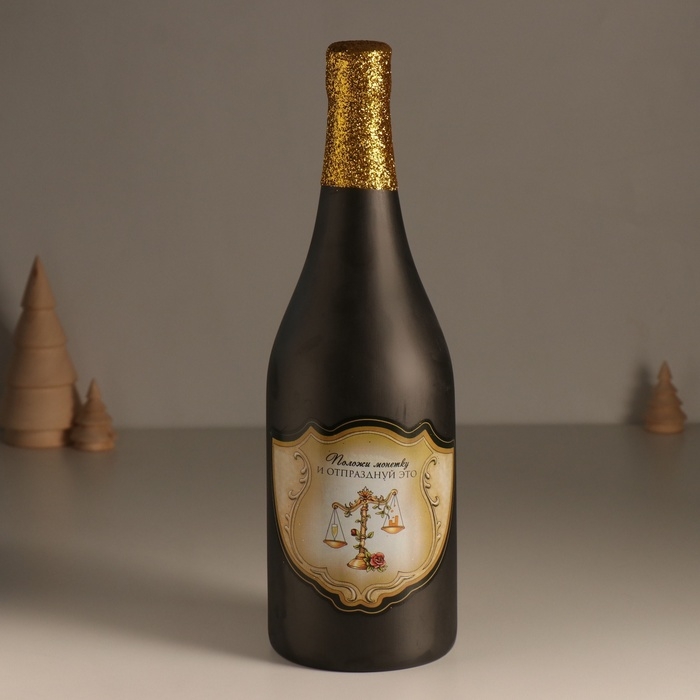 Копилка керамика "Бутылка шампанского - Положи монетку и отпразднуй" чёрная 9,5х9,5х30 см