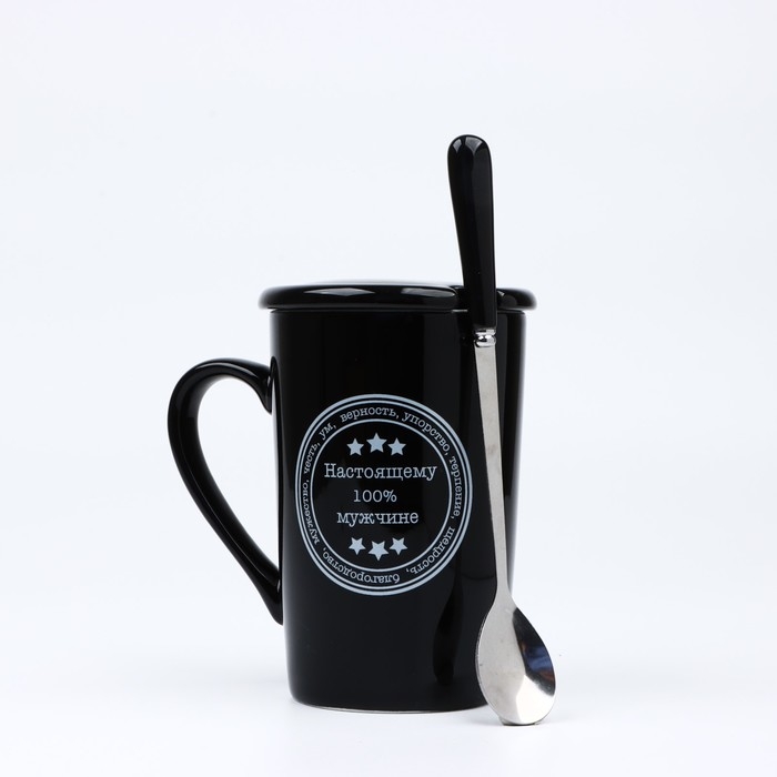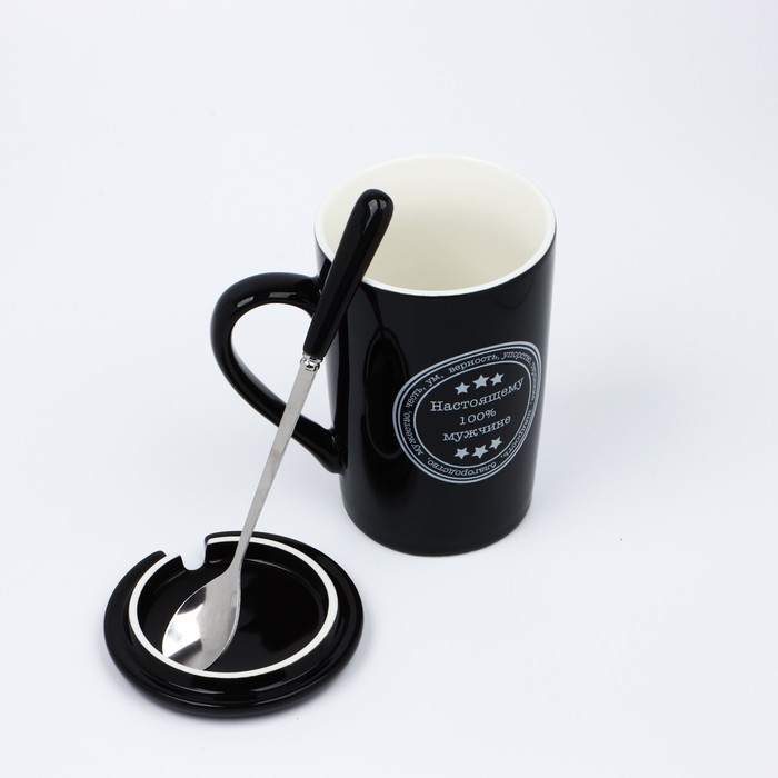 Кружка «Настоящему 100% мужчине», 420 мл, с ложкой и крышкой