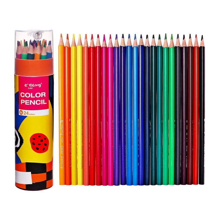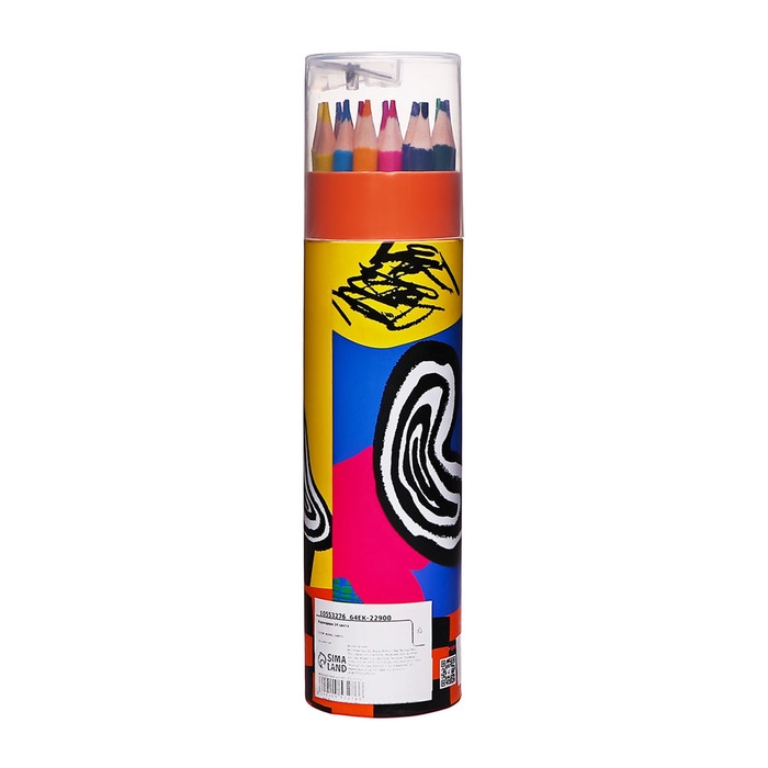 Карандаши 24 цвета, в тубусе, шестигранные, деревянные, Абстракция