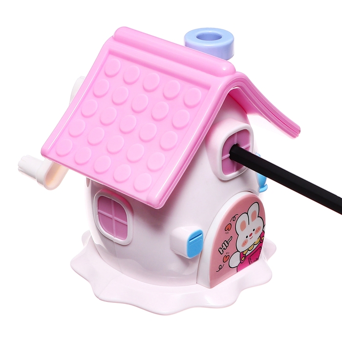 Точилка механическая с контейнером, 5 видов заточки, Домик розовый