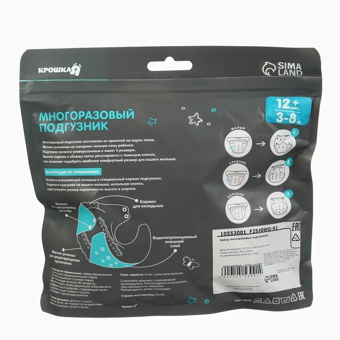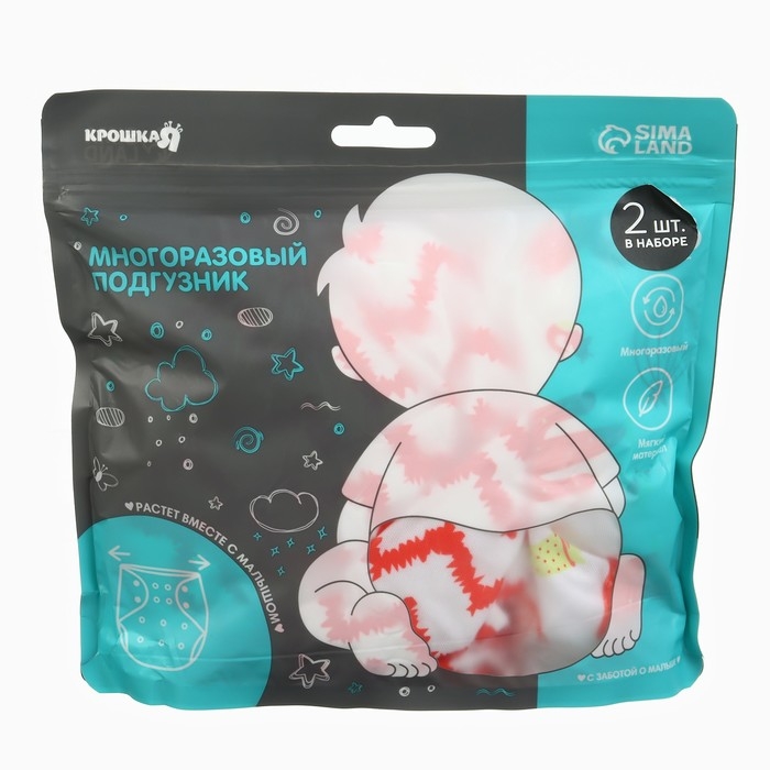 Набор многоразовых подгузников «Кактусы», 3-8 кг, цвет белый,красный, 2 шт., Крошка Я
