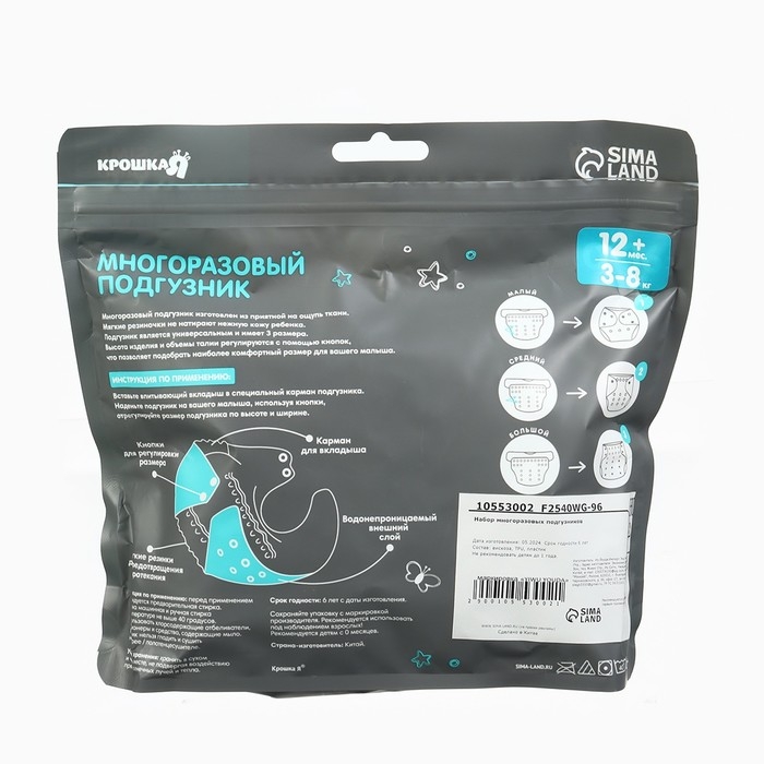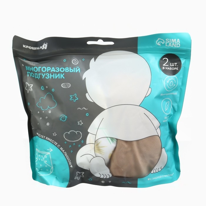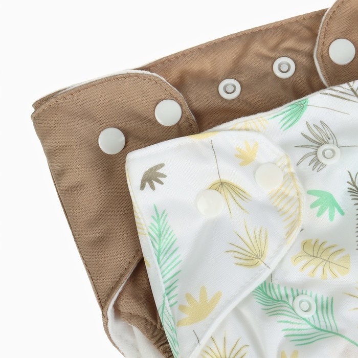 Набор многоразовых подгузников «Листья», 3-8 кг, цвет белый, коричневый, 2 шт., Крошка Я