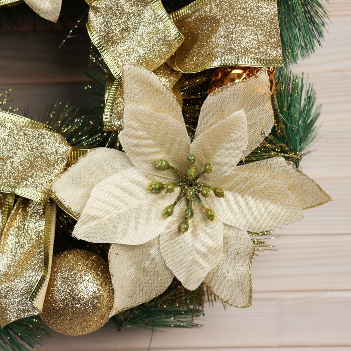 Венок новогодний d-30 см "Фестиваль блеска" цветы банты