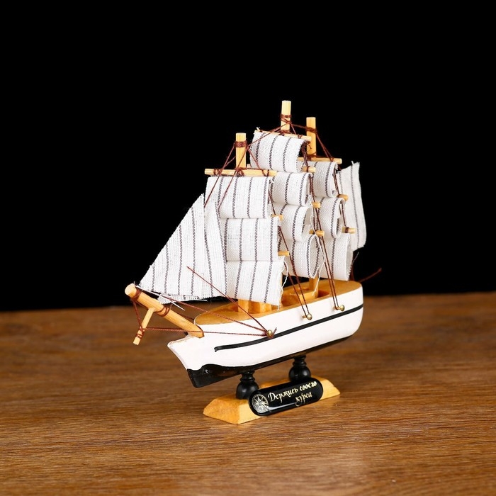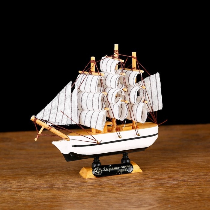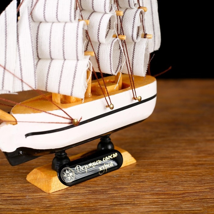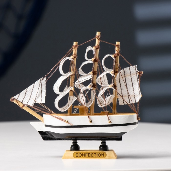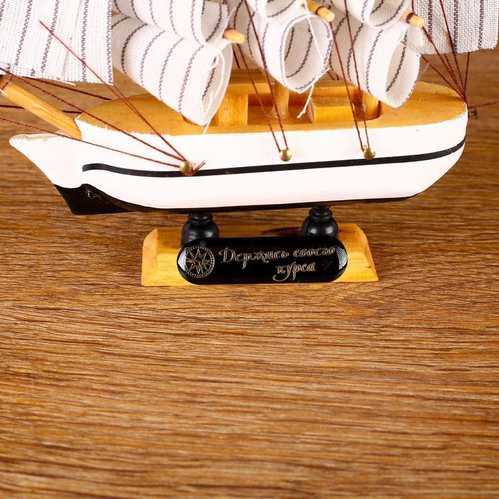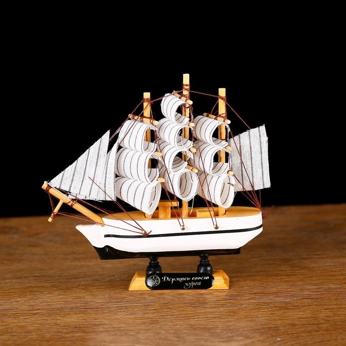 Корабль сувенирный малый «Ковда», борта чёрные с белыми полосами, паруса белые, 5,5×24×22 см