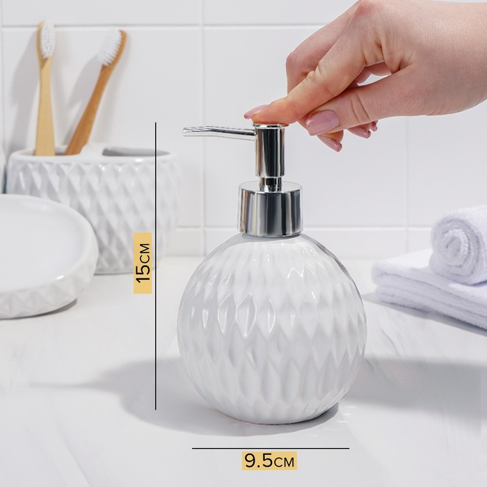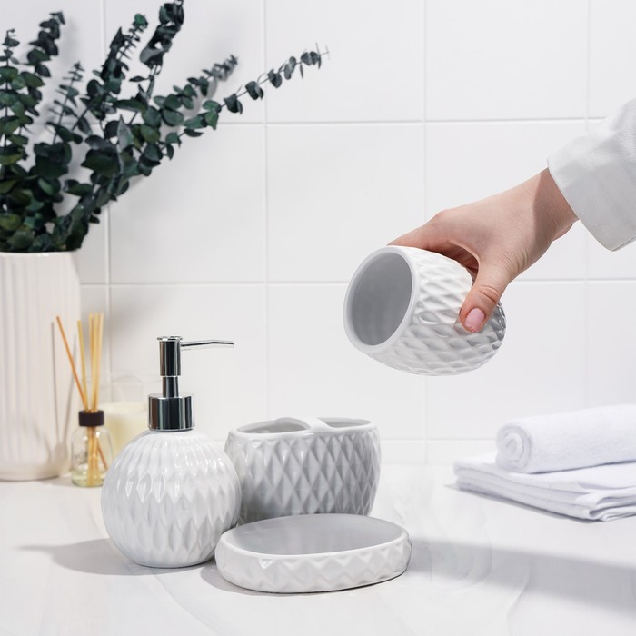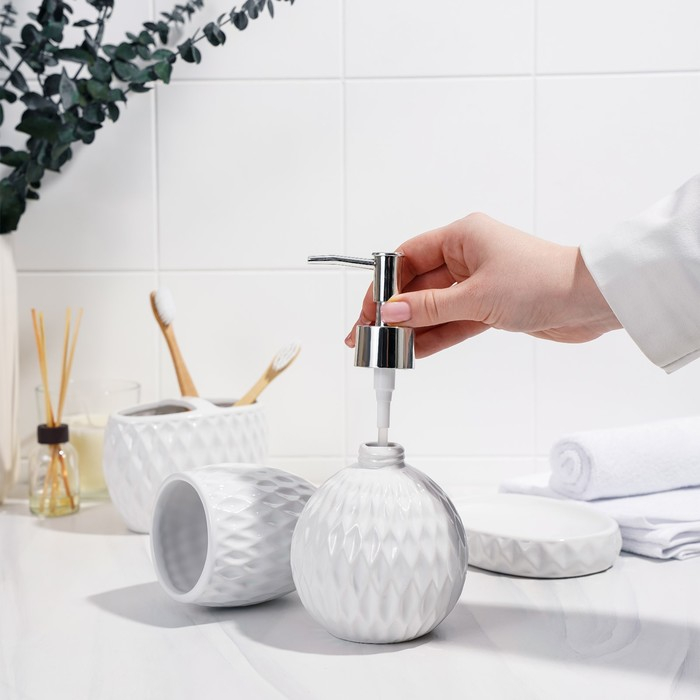 Набор аксессуаров для ванной комнаты «Камелия», 4 предмета (дозатор 450 мл, мыльница, 2 стакана), цвет белый