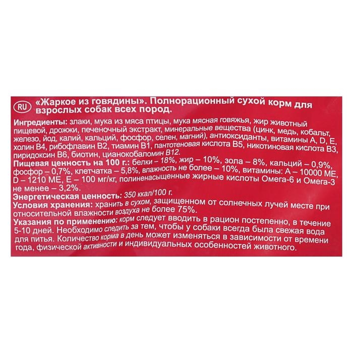 Сухой корм Tasty для взрослых собак, говядина, 15 кг