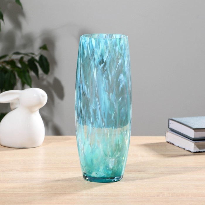 Каждая ваза выдувается мастером. Второй точно такой же не встретить. А случайный пузырёк воздуха или застывшая стеклянная капелька на горлышке лишь подчёркивают её уникальность.