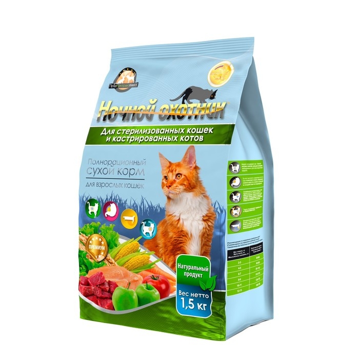 Сухой корм "Ночной охотник" для стерилизованных и кастрированных кошек, 1,5 кг