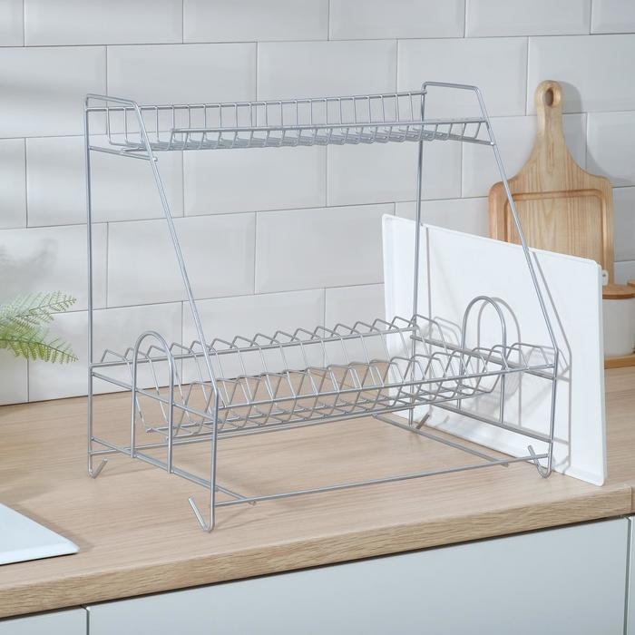 Сушилка для посуды с поддоном 2-х ярусная, 24×40×38 см, цвет хром
