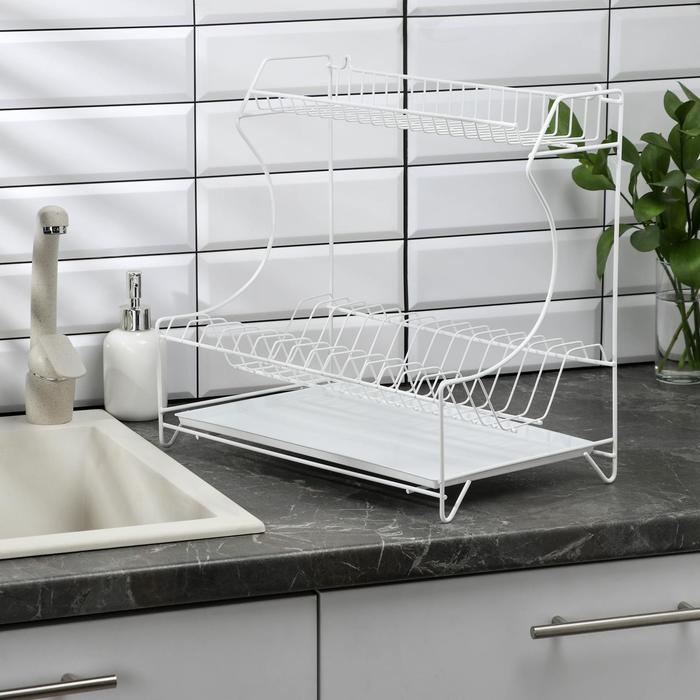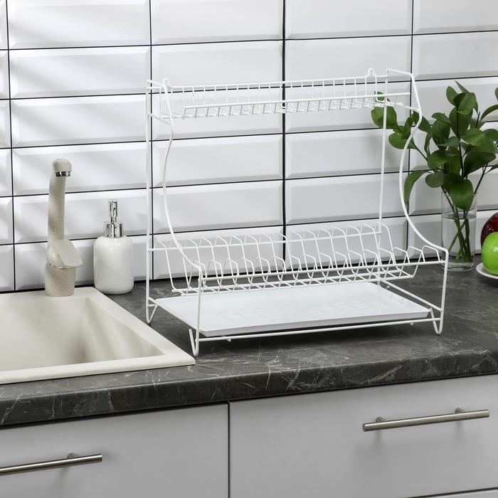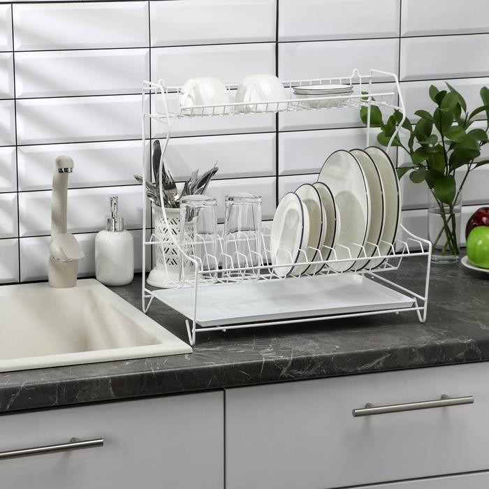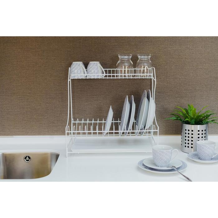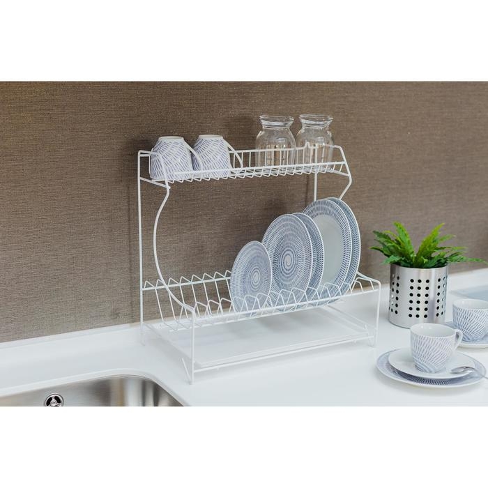 Сушилка для посуды с поддоном 2-х ярусная, 24×40×38 см, цвет белый