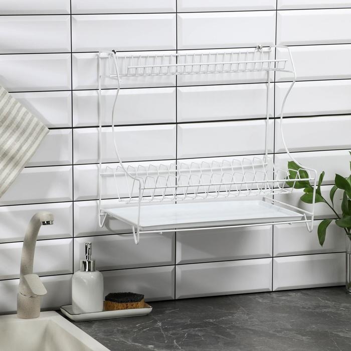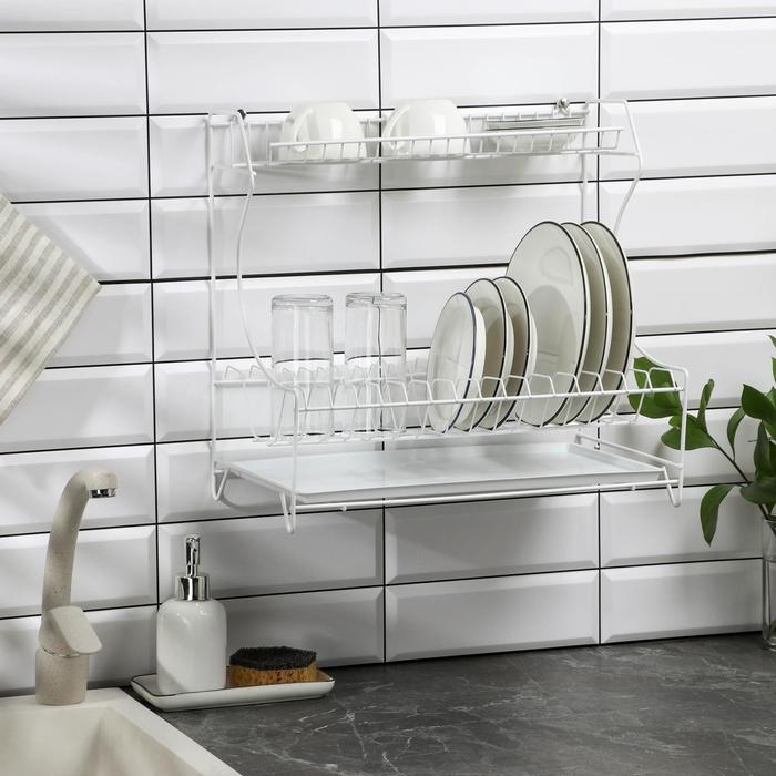 Сушилка для посуды с поддоном 2-х ярусная, настольно-настенная, 39,5×25×38 см, цвет белый
