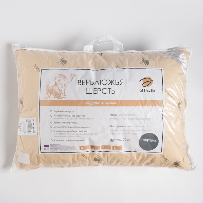 Подушка состоит из наполнителя из верблюжьей шерсти и нежнейшего лебяжьего пуха. Подушка не только обеспечивает правильное положение тела ночью, но и: