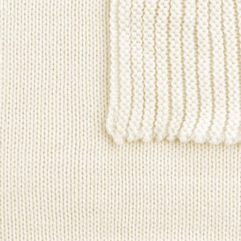 Однотонный плед рельефной вязки «в клеточку» с широким кантом, выполненным резинкой.