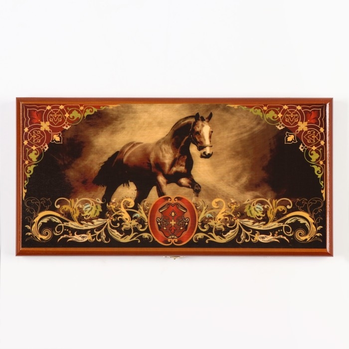 Нарды деревянные большие, настольная игра "Конь", 40 х 40 см, с шашками