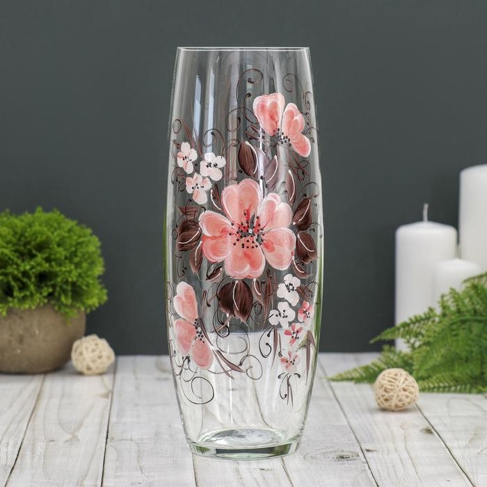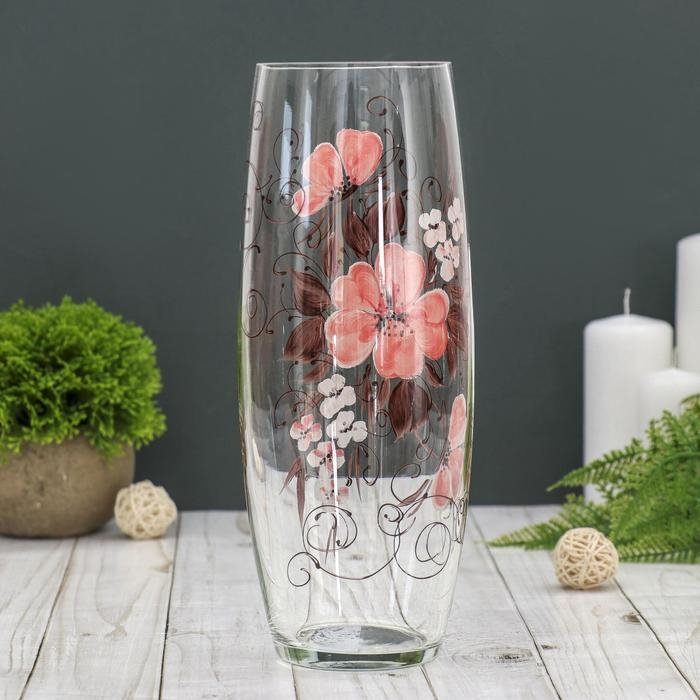 Ваза "Бочка" h 260 мм. из прозрачного стекла (ручная роспись) рис. Гибискус (Р.Ч.) преобразит пространство и как самостоятельный элемент декора. Наполните интерьер уютом!