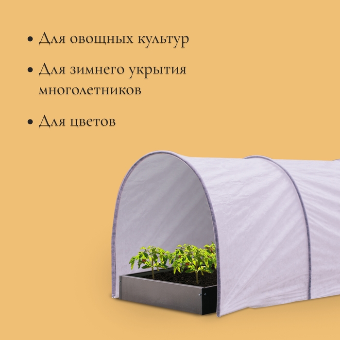 Парник прошитый, длина 8 м, 9 дуг из пластика, дуга L = 2.4 м, d = 16 мм, спанбонд 35 г/м², «уДачный»