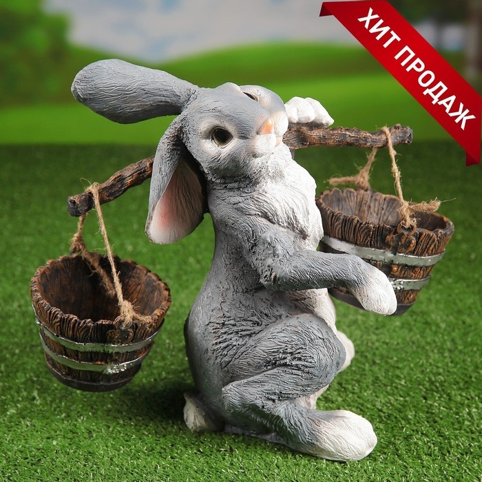 Садовая фигура "Заяц с коромыслом" 35см
