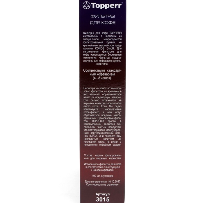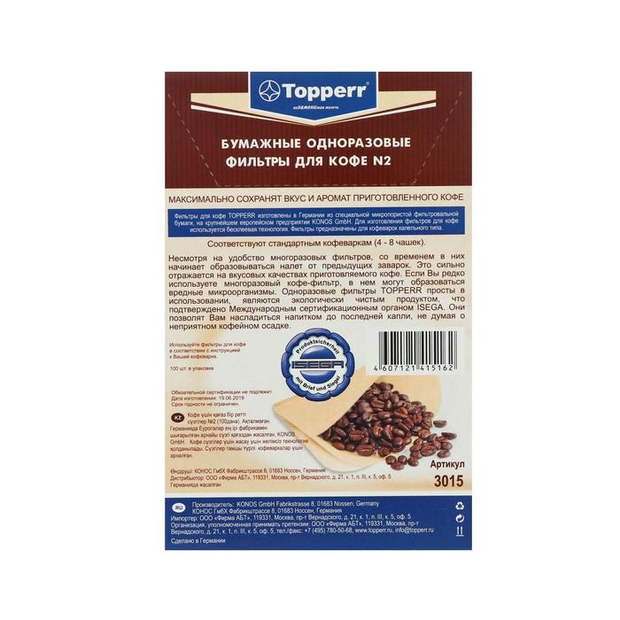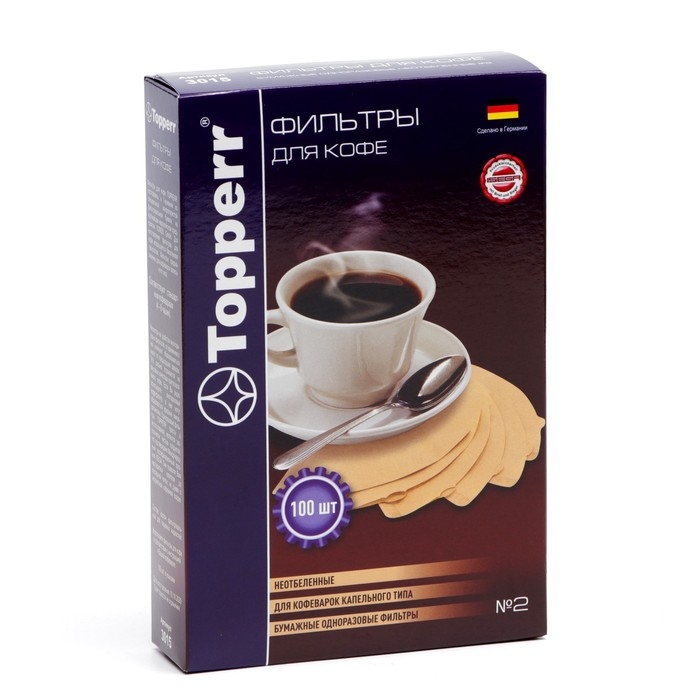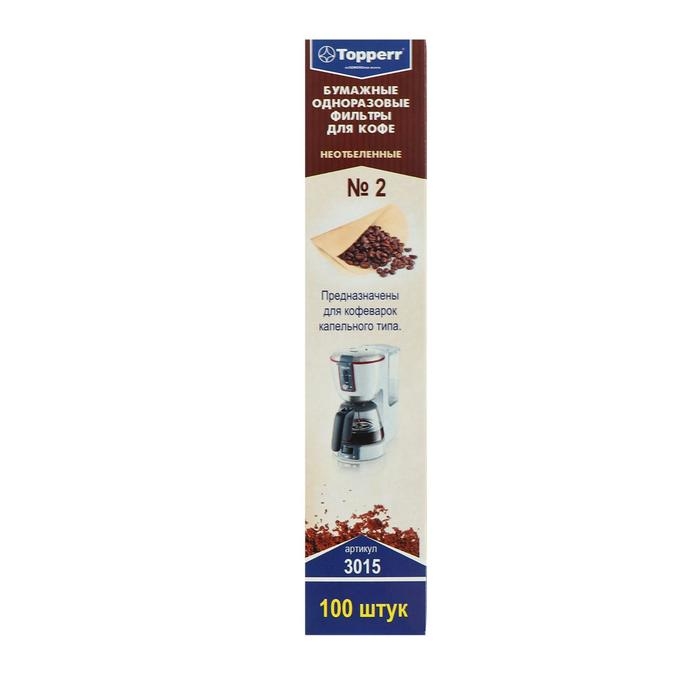 Бумажные одноразовые фильтры Тopperr для кофе №2, неотбеленные, 100 шт.