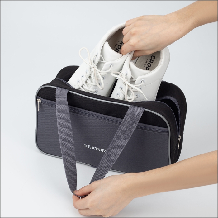Сумка для обуви на молнии, наружный карман, TEXTURA, цвет серый/чёрный