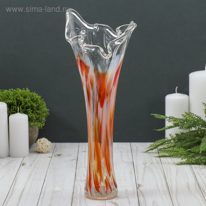 Ваза "Волна" 28 см, красно-белая