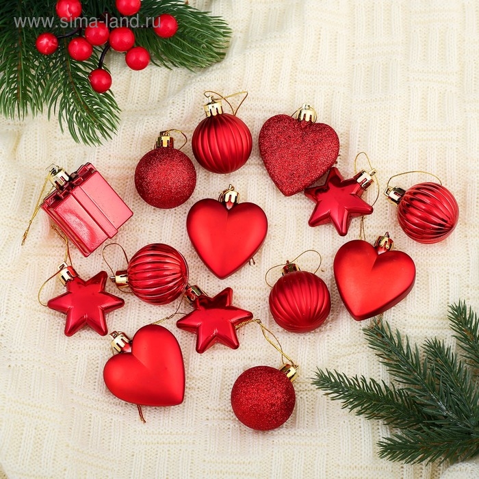Набор украшений пластик 24 шт "Грация" ассорти красный